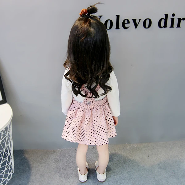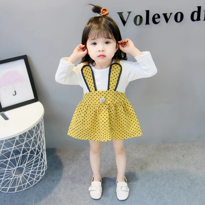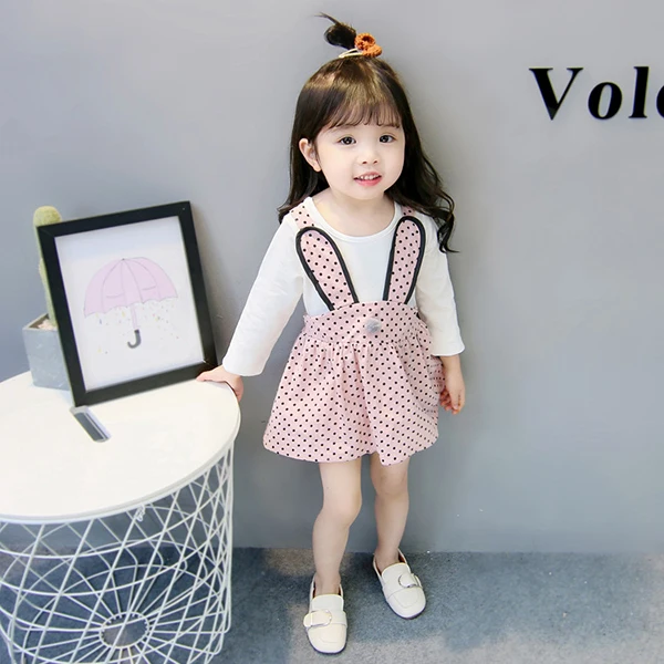 Весенне-осенняя одежда для новорожденных девочек платье с длинными рукавами и рисунком кролика платье принцессы в горошек с имитацией двух предметов