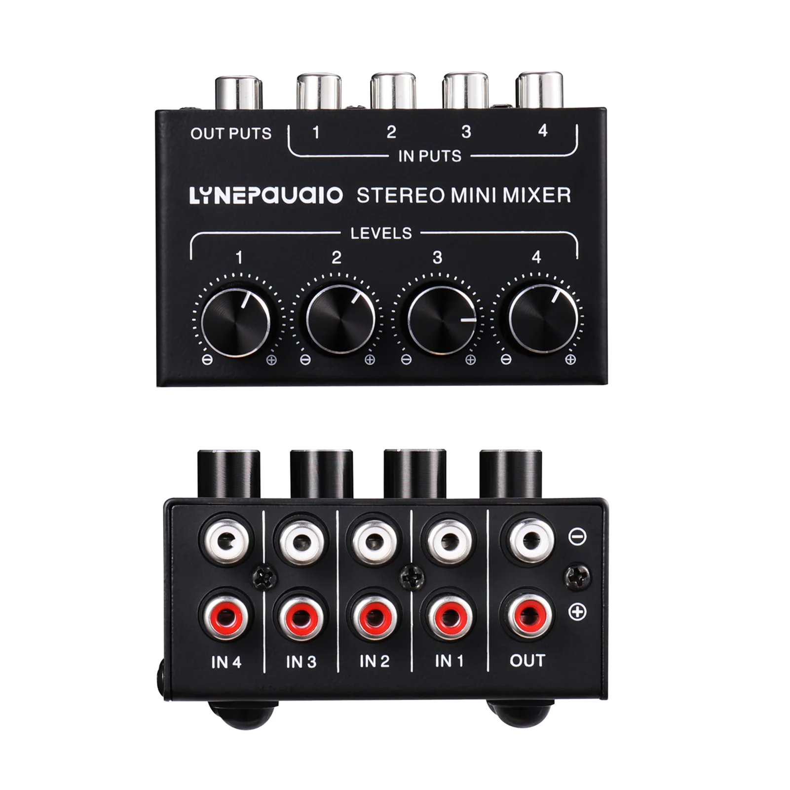 Легко:Он оснащен 4 наборами входов RCA (каждый канал имеет отдельный регулятор громкости), 1 набором выходов RCA.
