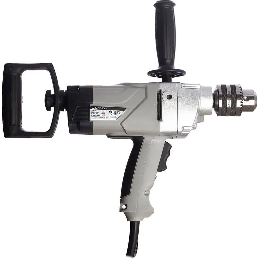 Мощная низкооборотная безударная дрель в комплектации миксер-дрели Д-16/1050Р2. Инструмент укомплектован составным шнеком и адаптером. При перемешивании различных смесей, миксер-дрель справляется с любой возможной задачей - начиная от краски и заканчивая бетоном с различными наполнителями. Высокий крутящий момент и низкие обороты дают возможность для приготовления больших объемов шпаклевок, растворов и смесей, в том числе отличающихся высоким воздухововлечением. Миксер-дрель также рекомендуется для тяжелых и длительных работ, таких как сверление отверстий большого диаметра и глубины, например, при сборке брусового дома для установки нагелей с помощью перовых сверл с удлинителем или винтовых сверл с ходовым буравчиком Левиса, для работы крацовками и шлифкругами при выполнении шлифовки и зачистки. Обновленная миксер-дрель очень удобна при эксплуатации, максимально учтены замечания и пожелания потребителей.