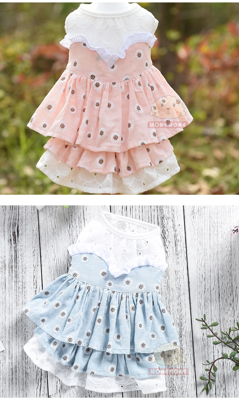 Хлопковые Платья для собак, жилет с цветочным рисунком, одежда голубого и розового цвета, милая летняя одежда для девочек, XS, S, M, L, XL, одежда для домашних животных, одежда для маленьких и средних кошек