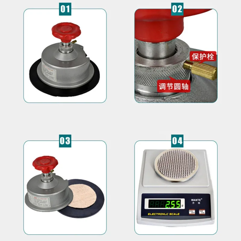 Площадь резки: 100 квадратных см двойные лезвия, обе стороны могут быть использованы, более прочный Вес режущего образца раз 100, вы можете легко рассчитать вес на квадратный метр точной площади резки.