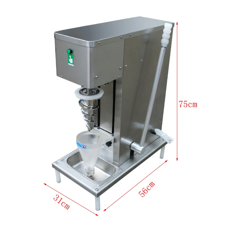 Название продукта: фруктовый замороженный йогурт миксер Тип: Рабочий стол Размер: 31*56*75 см Вес: 56 кг Использование продукта: фруктовое мороженое Материал: нержавеющая сталь Конусная чашка: пластик, нержавеющая сталь (пищевая) Напряжение: 220,110 в/50,60 Гц