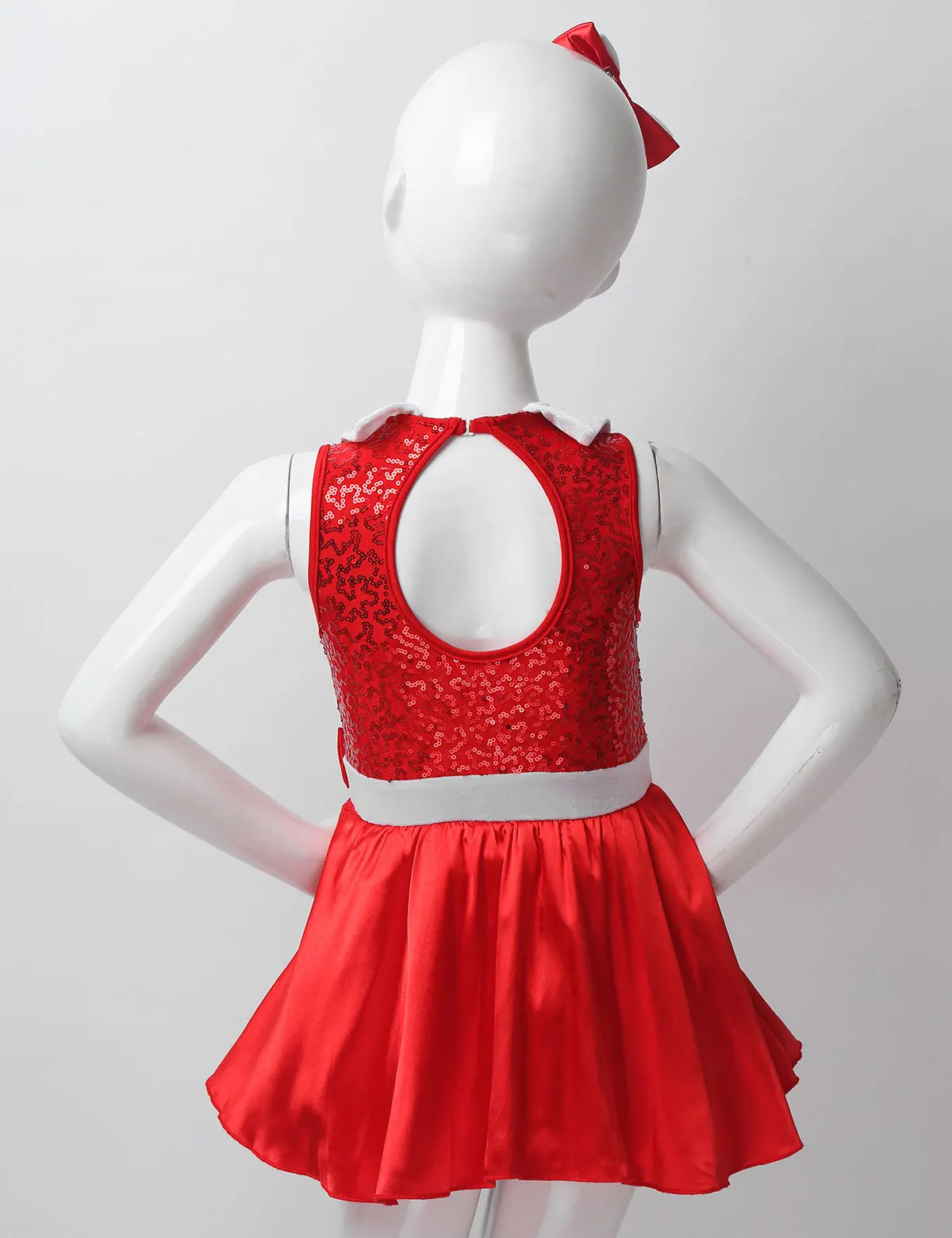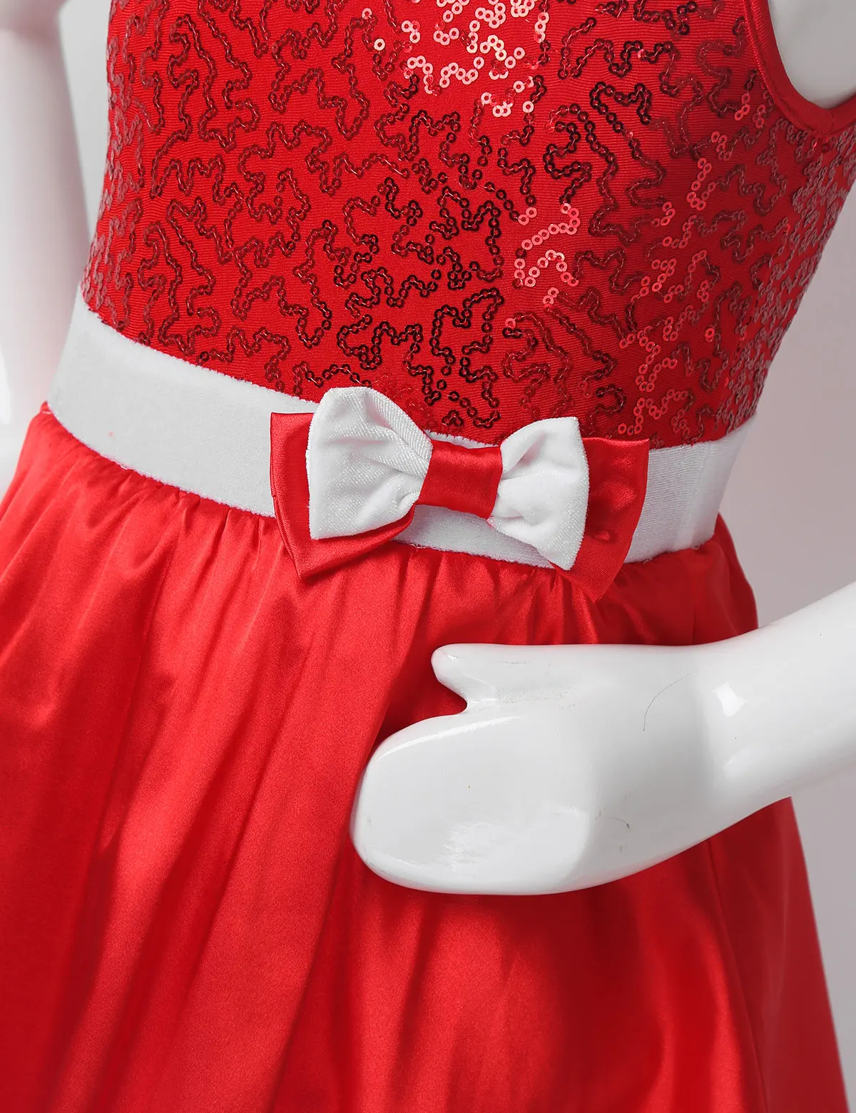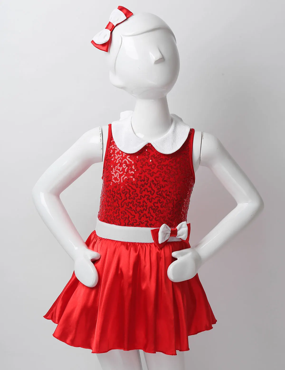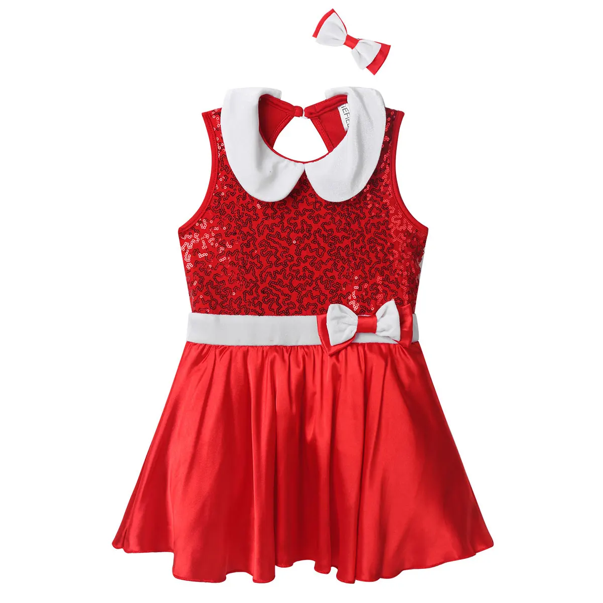 Рождественская танцевальная одежда для девочек 4-12 лет балетное платье-пачка без рукавов с блестящими блестками и бантом с заколкой для волос, детский костюм для сцены