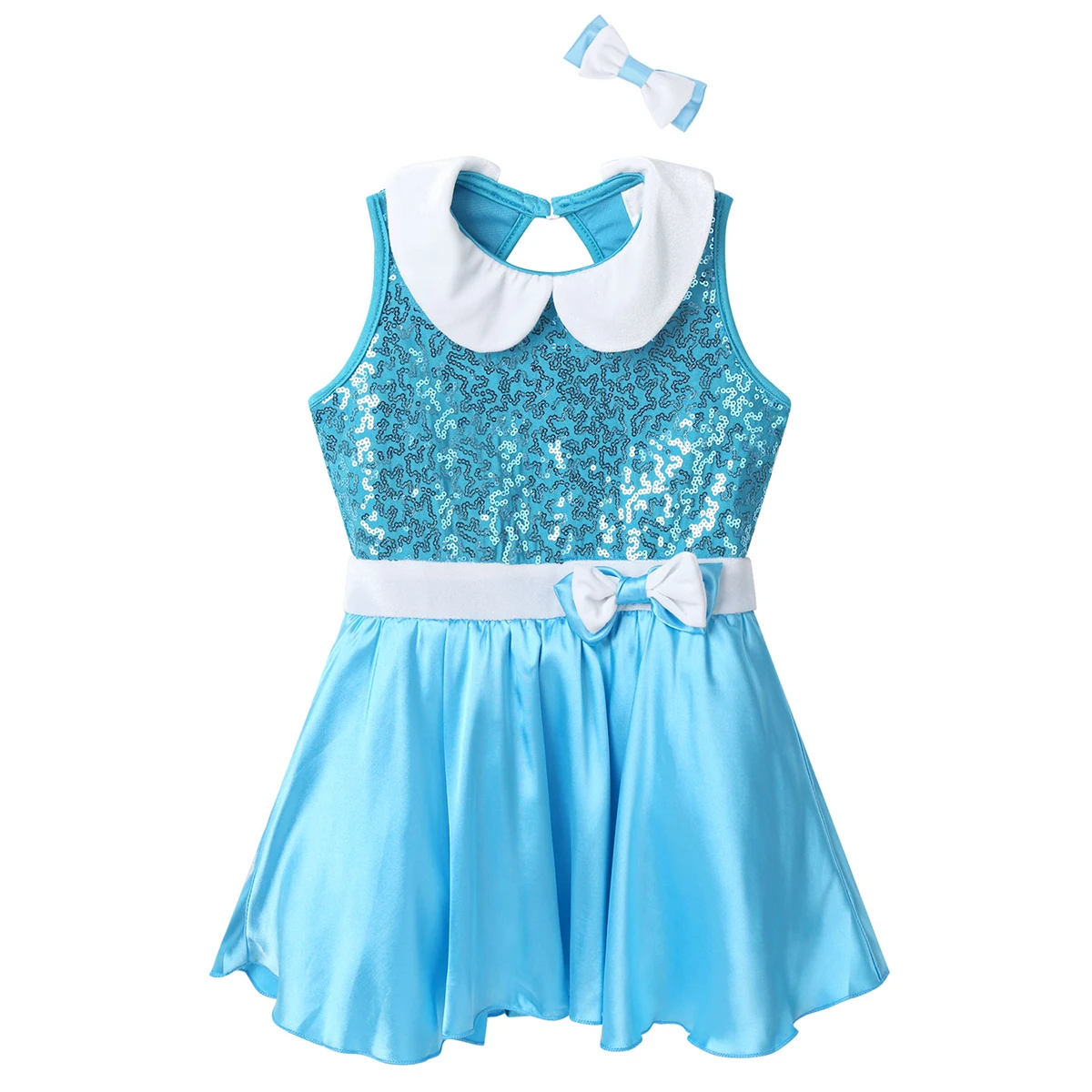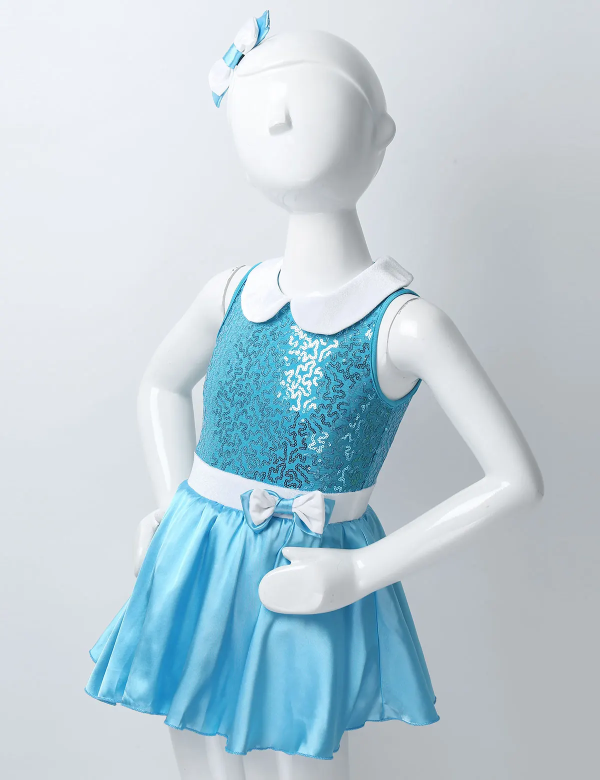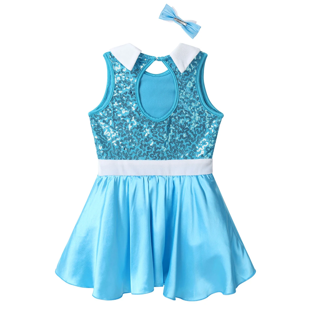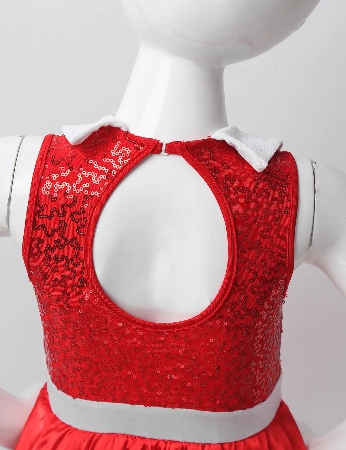 Рождественская танцевальная одежда для девочек 4-12 лет балетное платье-пачка без рукавов с блестящими блестками и бантом с заколкой для волос, детский костюм для сцены