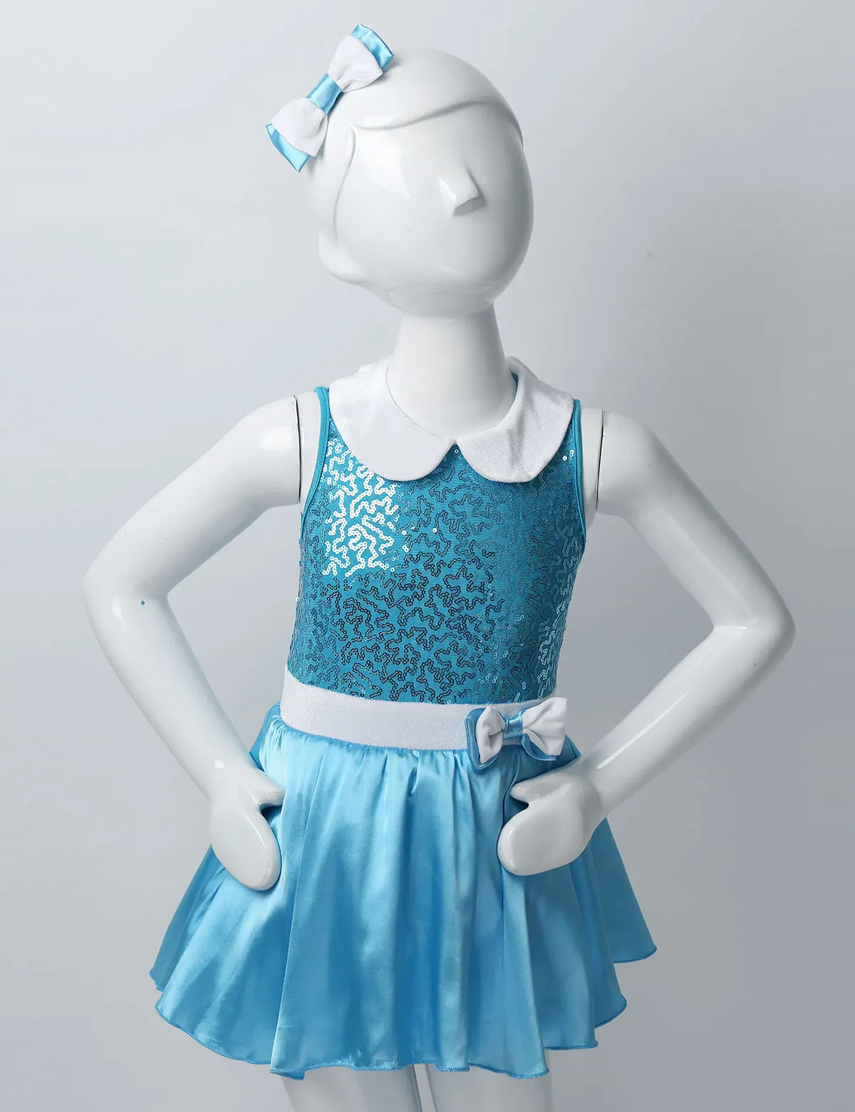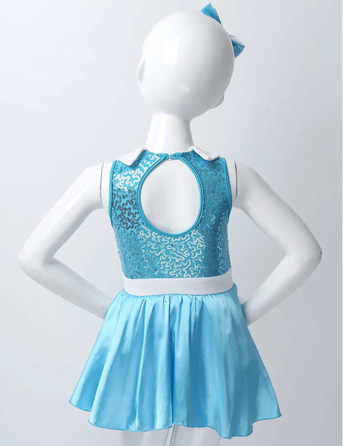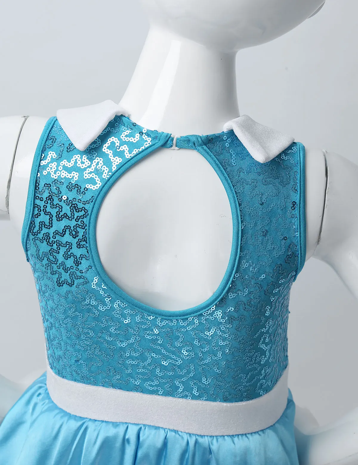 Костюм из полиэстера, с пайетками и атласным материалом, ручная стирка. Таблица размеров означает возрастные диапазоны для девочек, но они предназначены только для общего ознакомления. Без рукавов, кукольный воротник с застежкой. Лиф с блестками и подкладкой для удобного ношения. Замочная скважина сзади. Прошитый бант на талии. Двухслойное платье-пачка крепится вокруг талии, верхний атласный слой, 1 сетчатый слой. Со встроенными Низами. Поставляется с подходящей заколкой для волос. Отличный праздничный подарок для вашей девочки. Подходит для рождественского наряда, современных танцев, джаза, крана, сценического представления, фотографии и т. д.Полезные советы: Замеры делаются вручную, поэтому учитывайте небольшие погрешности. Цвет на фото может немного отличаться от реального товара из-за особенностей цветопередачи различных мониторов.