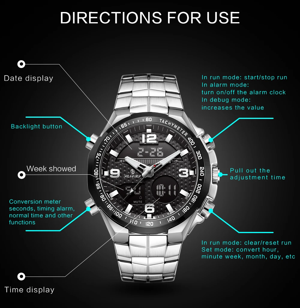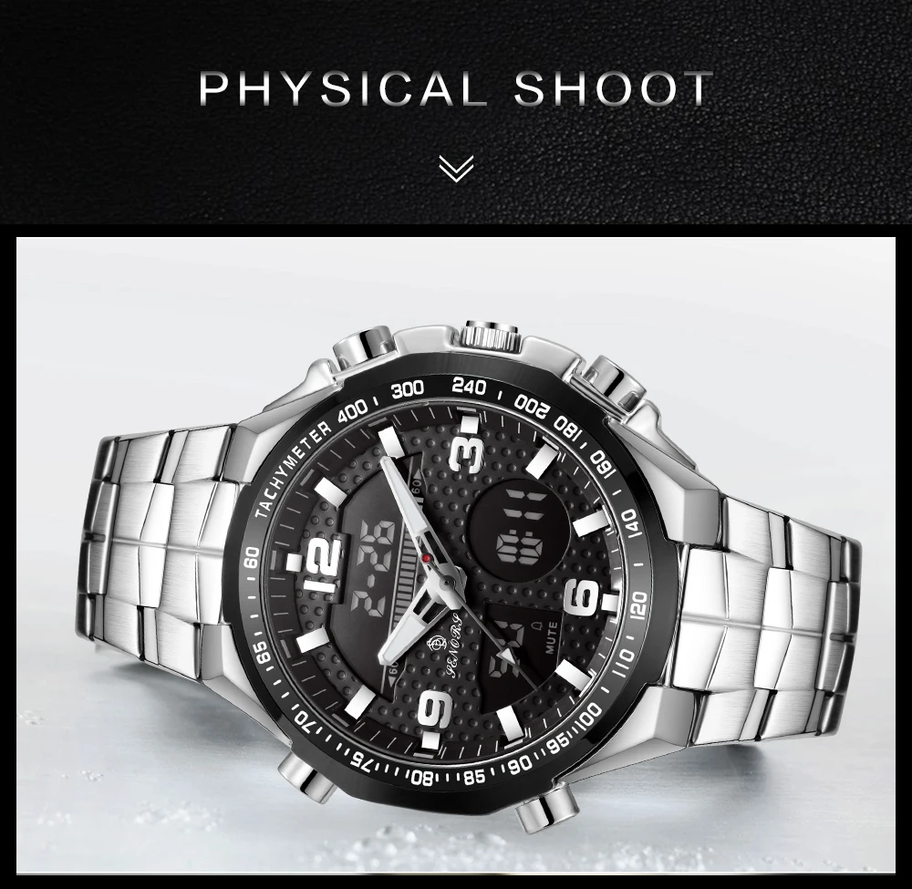 SENORS SN013 мужские светодиодный цифровые часы Япония Movt кварцевые наручные часы мужские 3ATM двойной дисплей спортивные часы с хронографом мужские часы