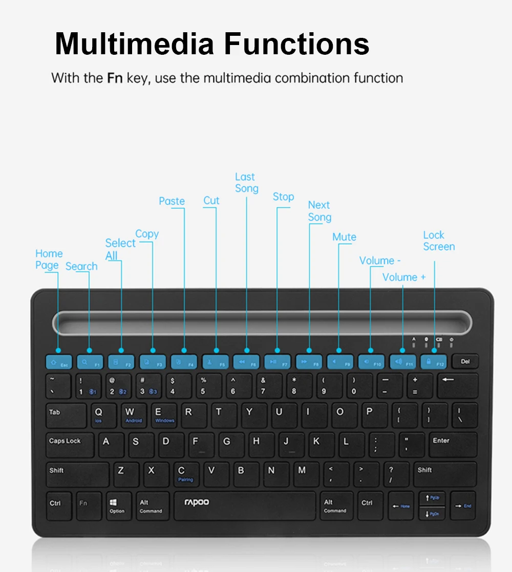 Широко используемые многофункциональные шелкография выгравированы в области F клавиатуры, которая может быстро переключать функции, такие как Интернет, мультимедиа и документальные операции, и работать эффективно и развлекать.