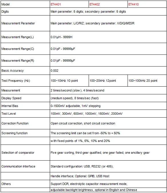 Новый электрический мост ET4401 / ET4402 / ET4410 сопротивление Сопротивление Емкость индуктивность измерительный прибор Настольный Цифровой LCR метр