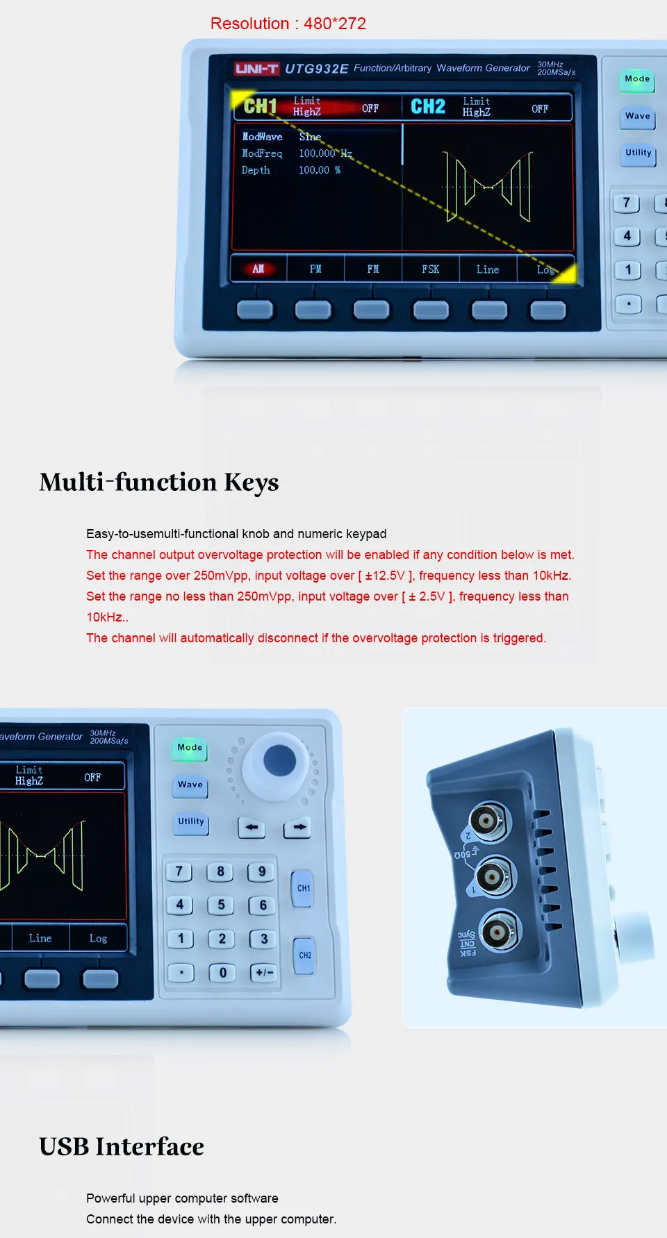 UTG900 серия функция генератор произвольной формы использует прямой цифровой