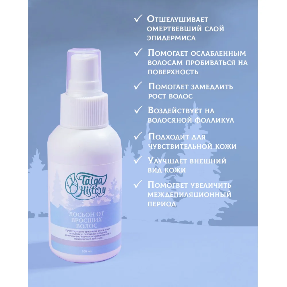 Лосьон помогает предотвращать появление вросших волос после процедуры эпиляции, а также для лечения последствий вросших волос.
