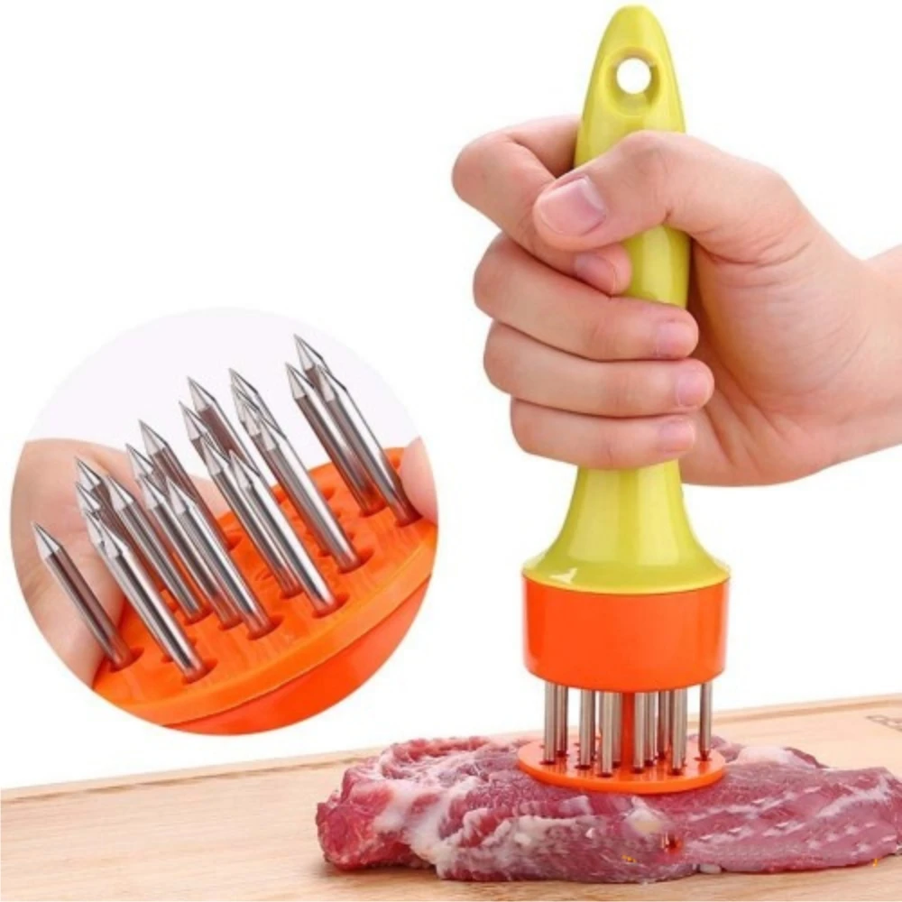 Современный инструмент для обработки мяса. Основные достоинства тендерайзера: мясо рыхлой структуры сохраняет свои вкусовые свойства; мясо при жарке становится мягким и сочным; мышечные волокна при обработке тендерайзером не травмируются, при этом соединительные ткани максимально разрушаются; с использованием прибора время, потраченное на приготовление продукта, значительно сокращается.