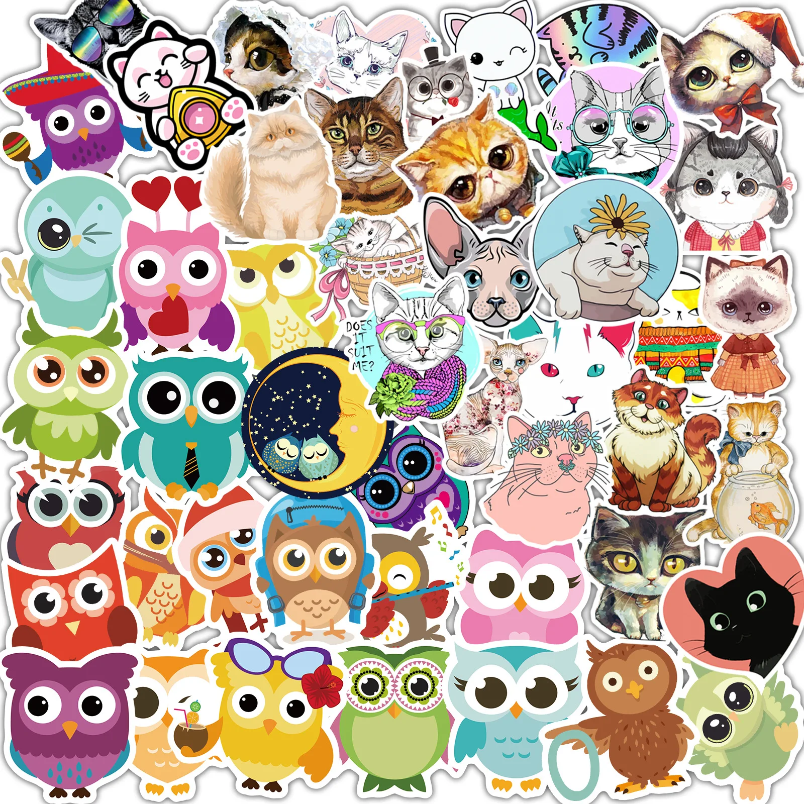 80 шт наклейки кошки + 80 шт наклейки совы