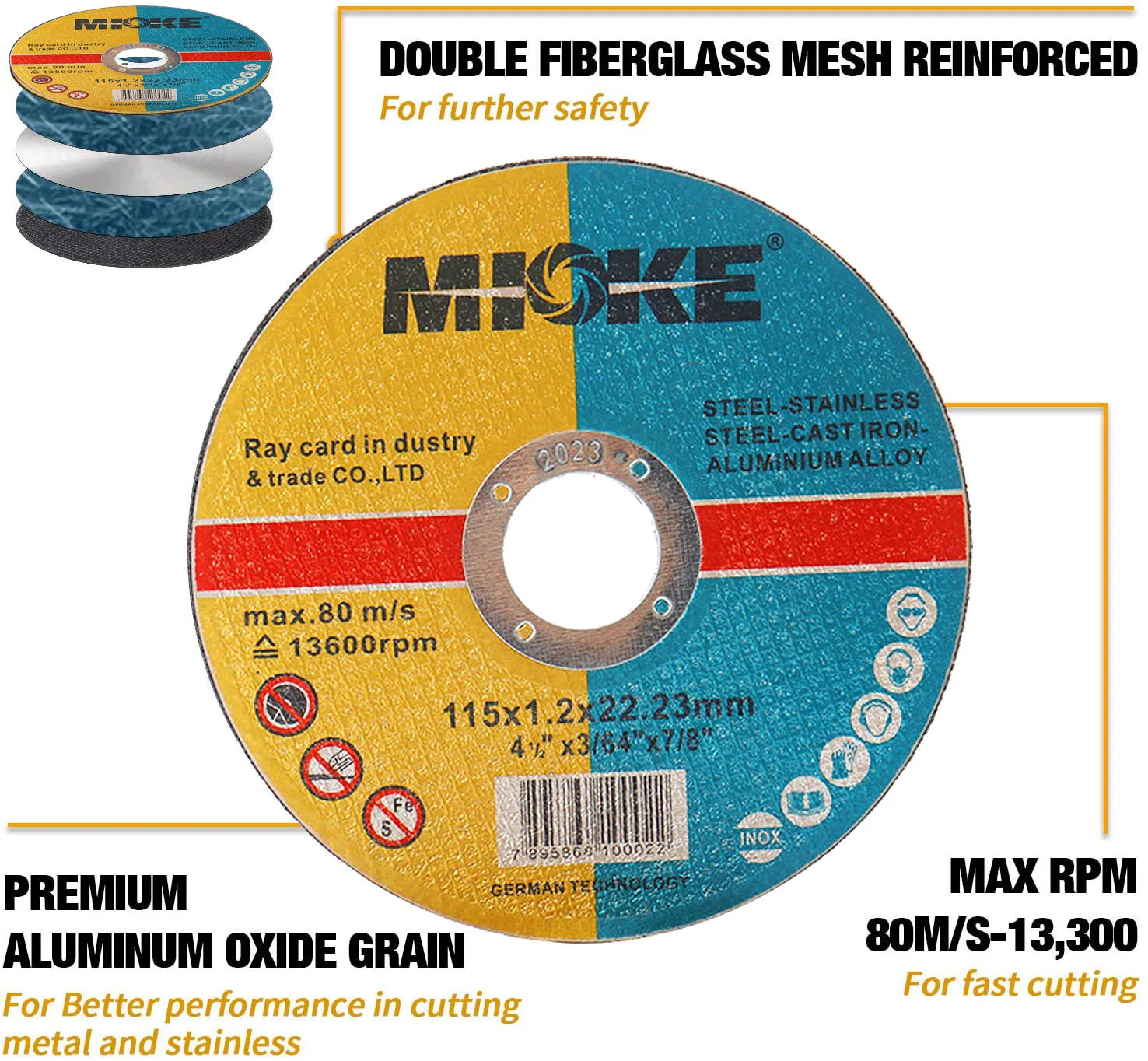 -Материал: армированная волокном смола -Скорость: 13600 об/мин (макс. 80 м/с) -Диаметр: 115 мм/4,5 дюйма -Диаметр отверстия: 22,23 мм/7/8" -Толщина: 1,2 мм -Цвет: черный, как показано на изображении -Количество: 5/10/15/20/25/30/40/50 шт