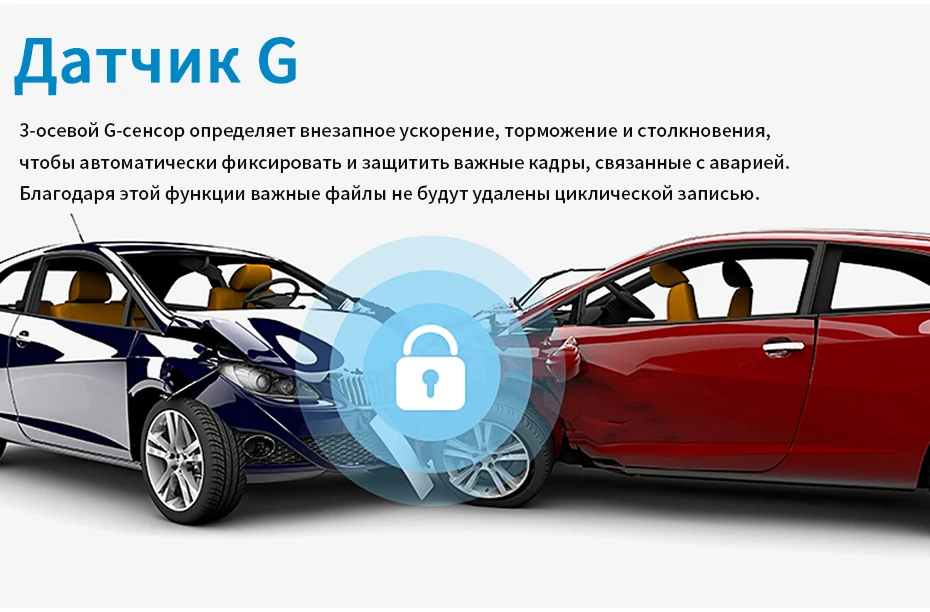 3-осный g-датчик Сенсор чувства непредвиденное ускорение, торможение и столкновения для автоматического захвата и защиты критических камер окружающие несчастного случая. Благодаря этой функции важные файлы не будут удалены циклической записью.