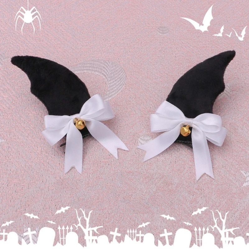 Дизайн крыльев летучей мыши черного дьявола, милый бант и золотой маленький колокольчик украшены, зажимы из кожи аллигатора.