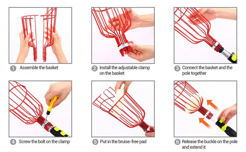 1. Просто прикрутите плодосборник к любому стандартному бытовому стержню с резьбой.2. Встроенная губка защищает ваш фрукт от любых повреждений.3. Крепкие Стальные Щипцы захватывают фрукты, просты в использовании, вы можете собирать фрукты, не поднимаясь по лестнице, собирать фрукты удобно и практично.4. Подходит для домашнего садоводства, садов, парков, ферм, садов и т. д.Если у вас есть какие-либо комментарии, пожалуйста, свяжитесь с нами в любое время, мы сделаем все возможное, чтобы удовлетворить ваши любые требования.