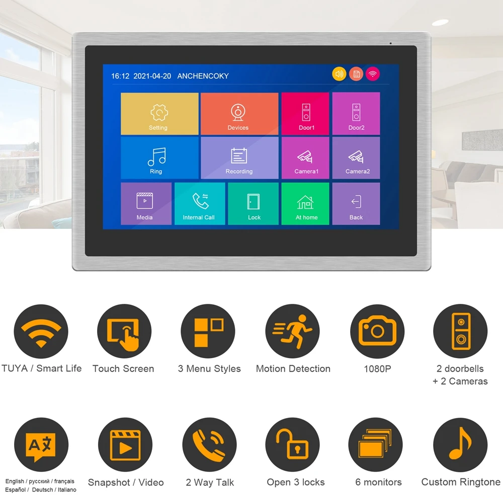 10-дюймовый сенсорный экран WI-FI видео-дверной звонок с 1080P открытый вызов панель