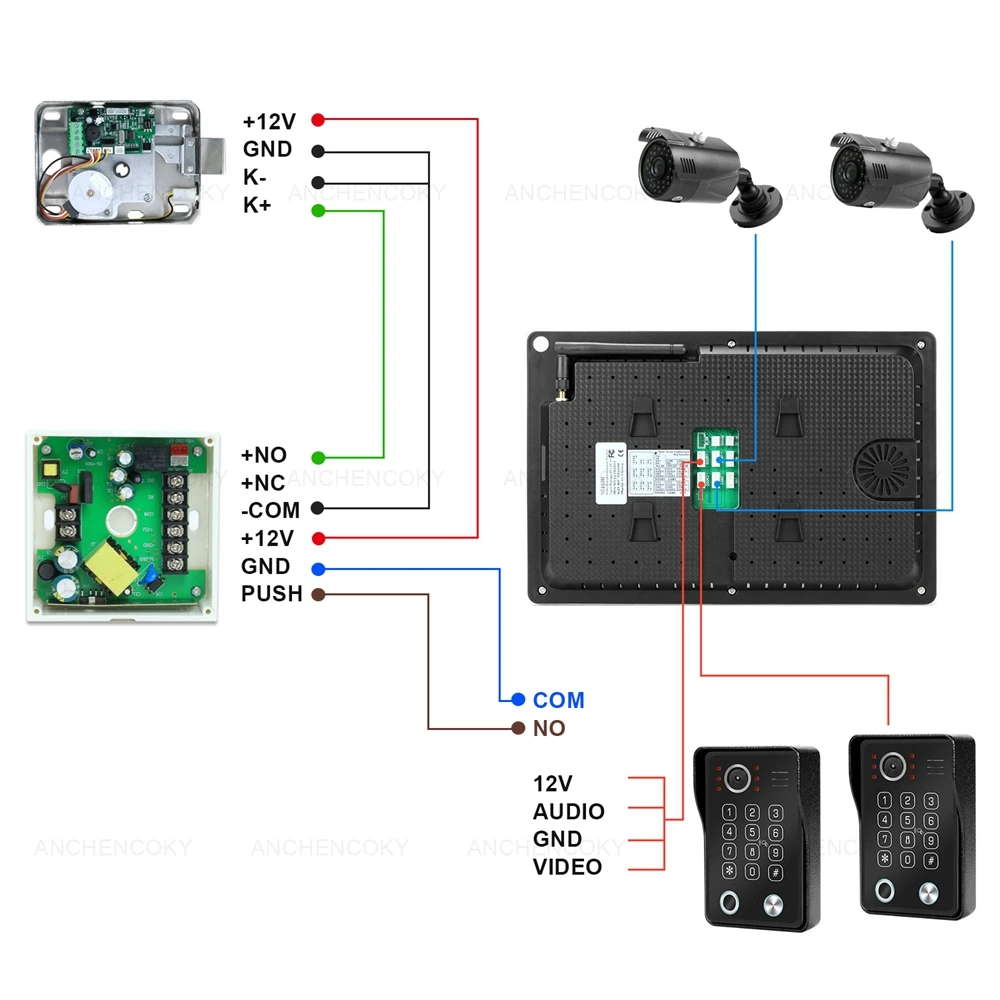 11. Монитор поддерживает подключение электрического замка отдельно, если подключение с 2 дверными звонками, он поддерживает открытие 3 замков отдельно