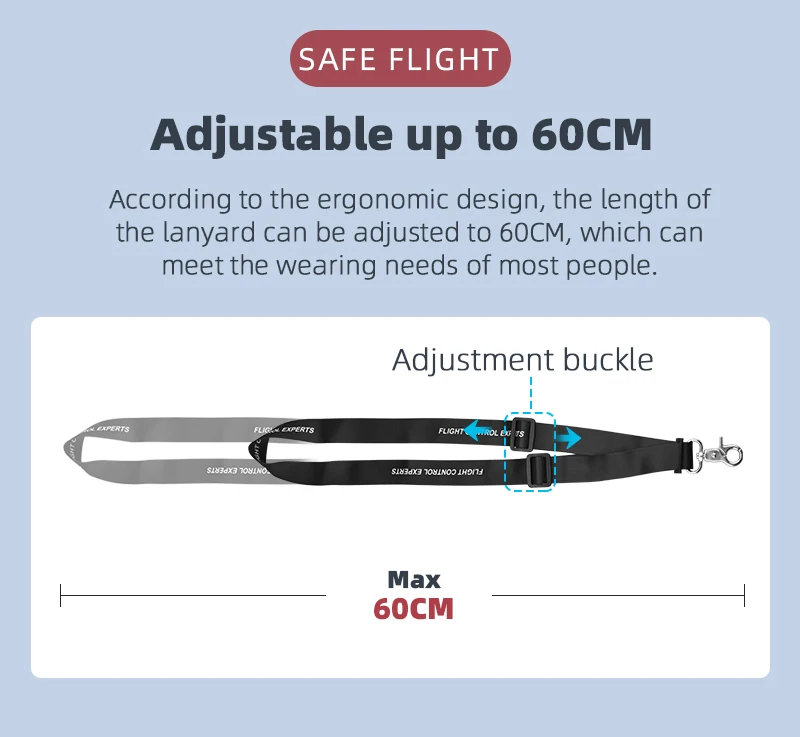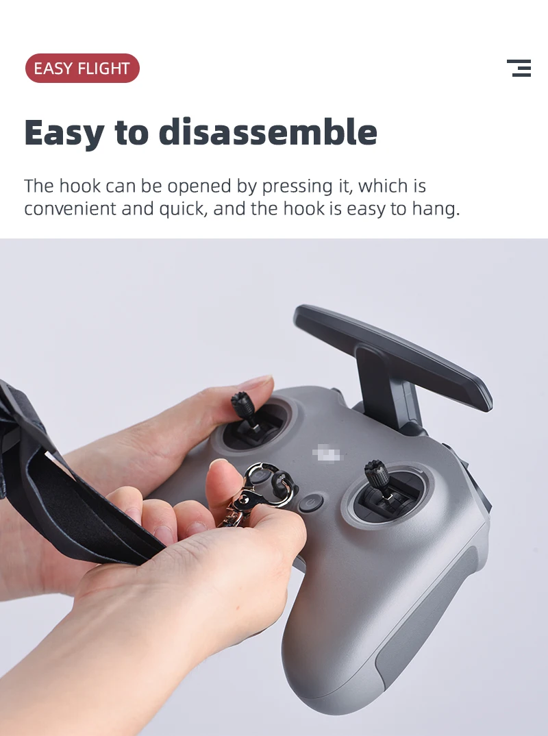 1. Ремешок подвешивает пульт дистанционного управления на шее, что эффективно снижает давление на руки и облегчает управление полетом;