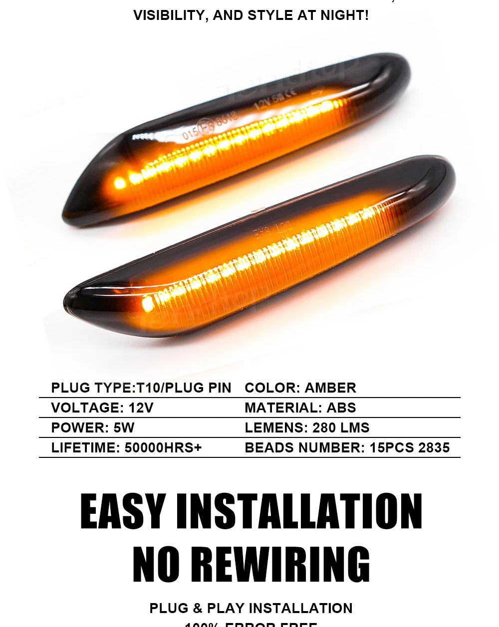 -Идеальное обновление или замена для оригинальных боковых маркеров, дайте вашему автомобилю обновленный современный вид.