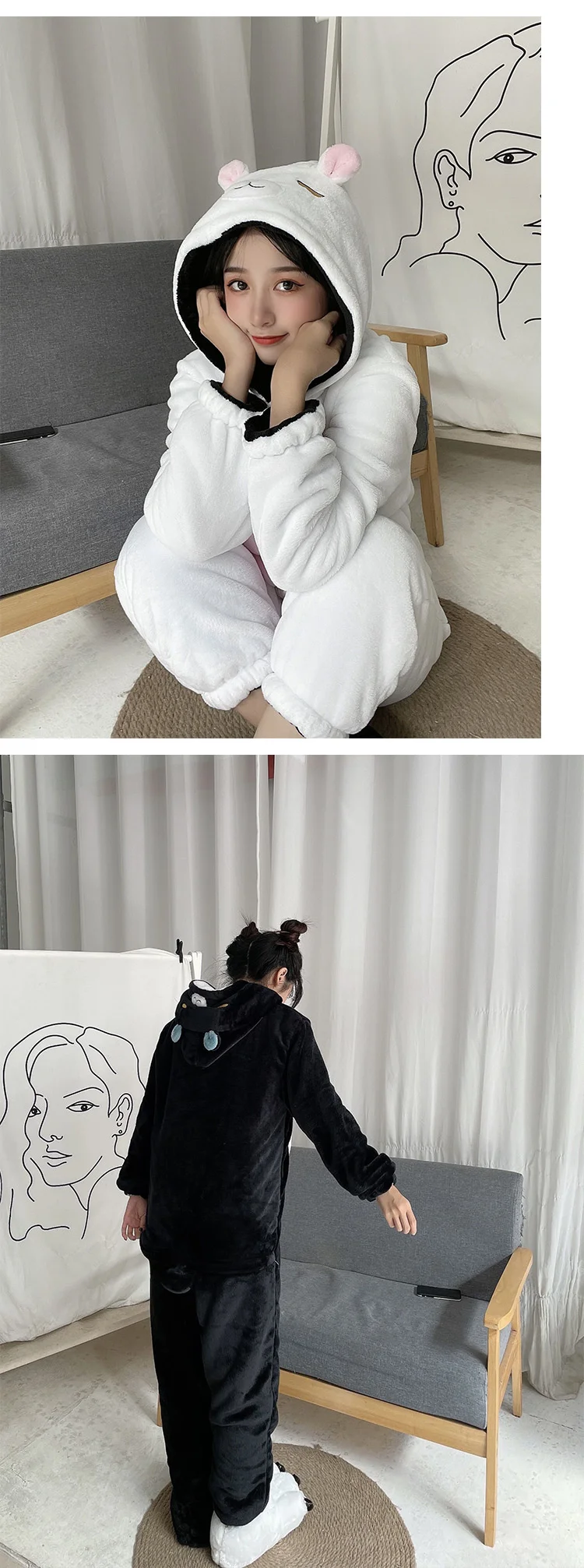 4. Этот продукт можно носить с обеих сторон, и это означает, что пижаму можно носить в двух цветах.