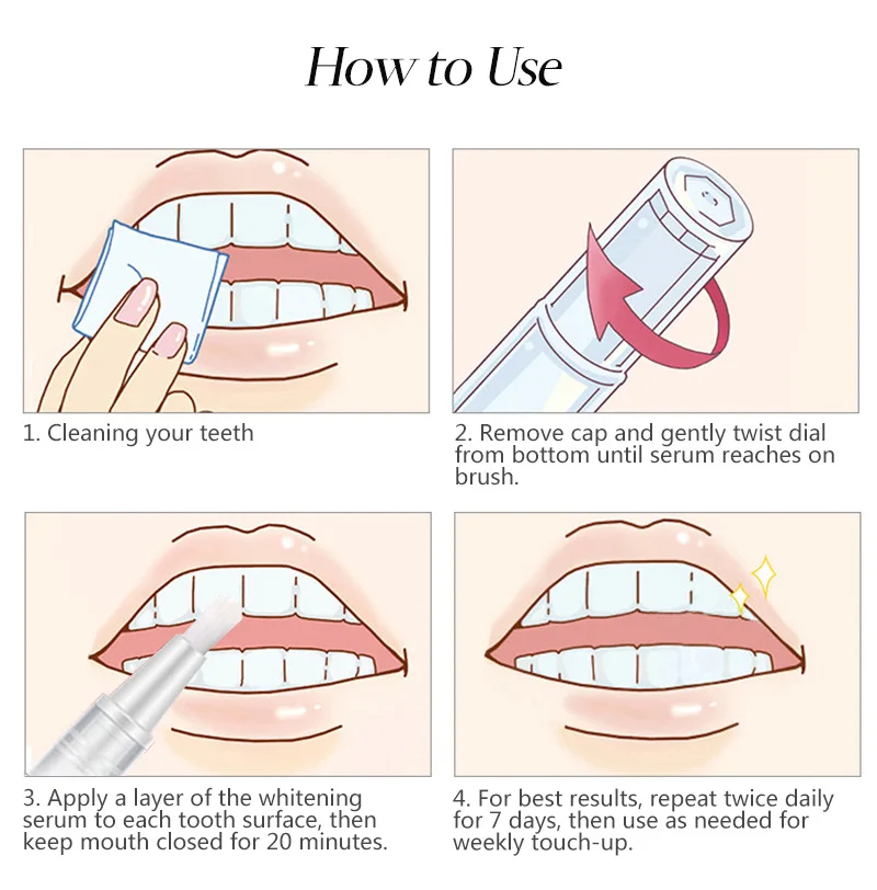 Отбеливатель зубов после первого использования:После использования этого набора для отбеливания зубов с светодиодный подсветкой, см. Заметные результаты только после одного использования. Нанесите отбеливатель зубов на лоток для рта всего 10 минут в день, чтобы удалить пятна от кофе, соды, вина, курения и сладких продуктов.