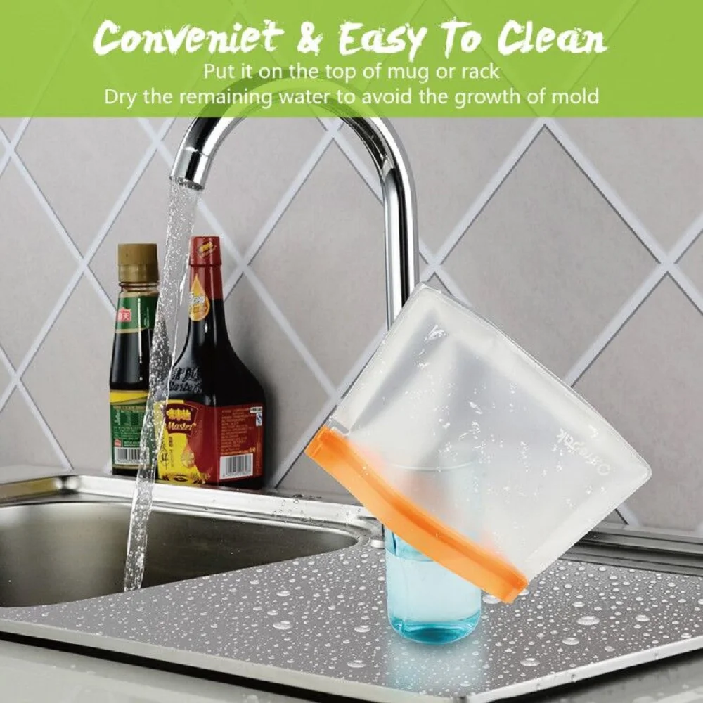 3. Легко чистить и экологически чистые-эти мешки ПЭВА очень легко чистятся, но не подходят для посудомоечной машины, рекомендуется ручная стирка, так как посудомоечная машина может привести к деформации молнии, что влияет на герметизацию и использование мешков. PEVA не замерзает, но максимальная температура может выдерживать 80 ℃/176 ℉. PEVA не загрязняет окружающую среду, даже если она заброшена, и один многоразовый пакет может сэкономить до 500 шт пластиковых пакетов. Быть героем, который защищает окружающую среду.