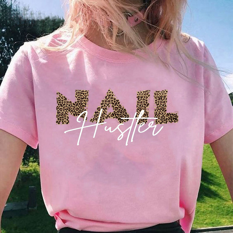 Женская Винтажная футболка, летний топ с леопардовым принтом в стиле Харадзюку, лак для ногтей, печать