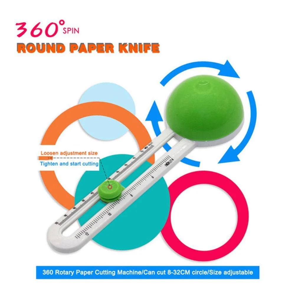 ЭтоИдеальный резак круглой формыМожет помочь вам нарезать круглые формы на различных крафтовых материалах с точностью и легкостью!Вращающийся инструмент с двумя головками резака и регулируемыми измерительными каналами, которые режут идеальный угол 360 градусов.