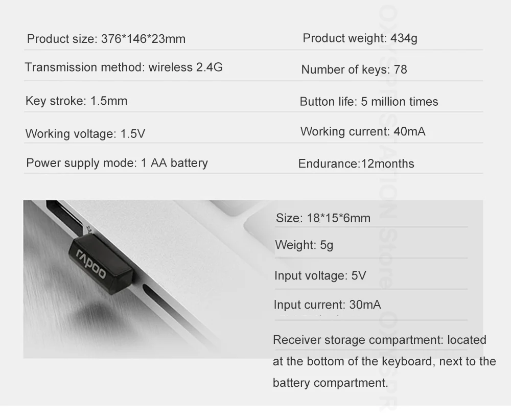 Отсек для хранения приемника: расположен в нижней части клавиатуры, рядом с отсеком для батареек.