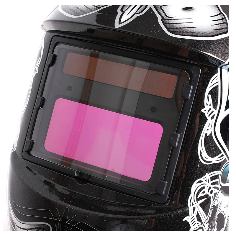 Окно большого размера для более удобного просмотра. И внешний вид этой сварочной маски «череп с паутиной» может сделать вас более крутым и красивым.