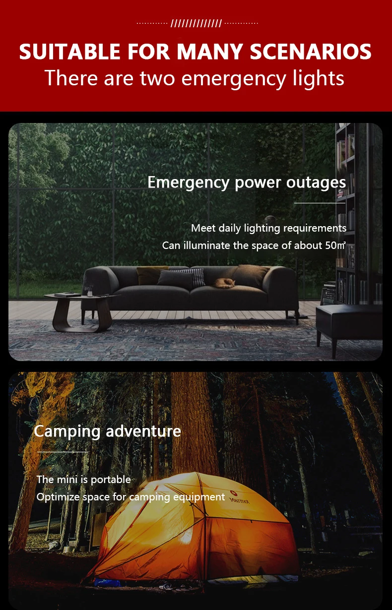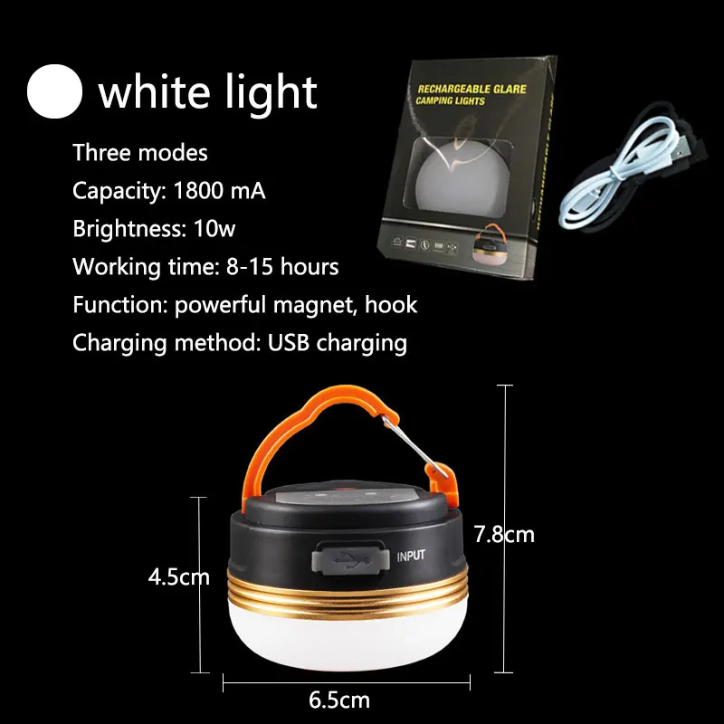 2. Многоцелевой светодиодный светильник для кемпинга, аварийная ночь, настольная лампа, настенный подвесной светильник, безопасный и энергосберегающий; Портативный с высокой яркостью.