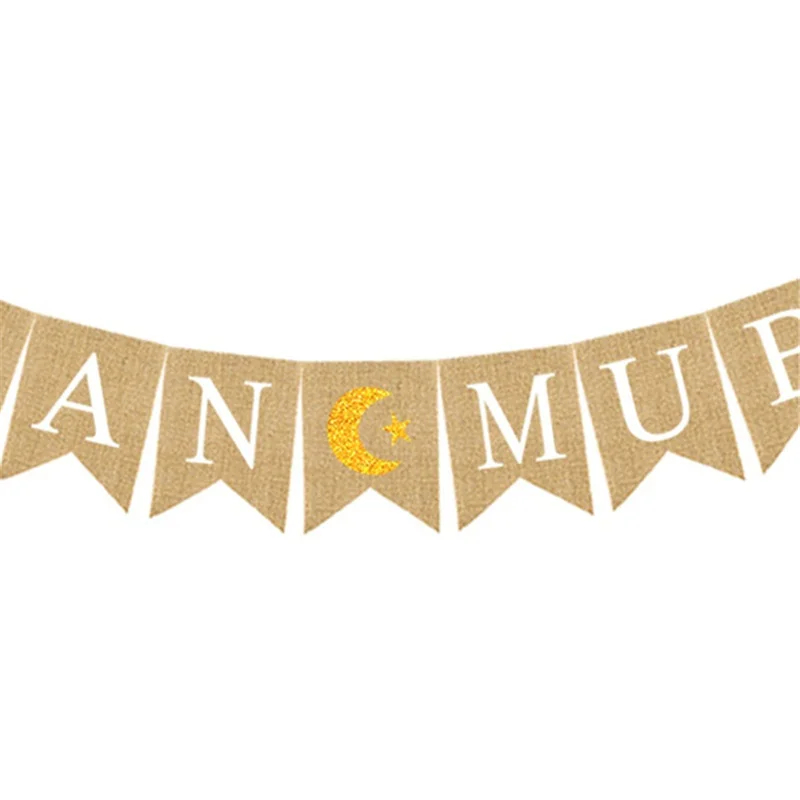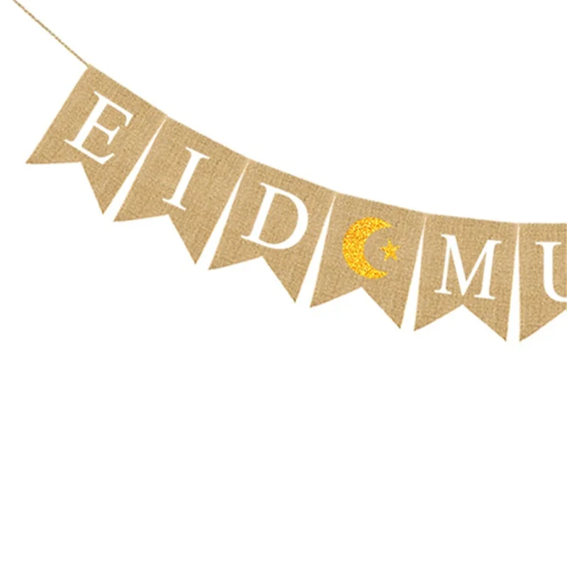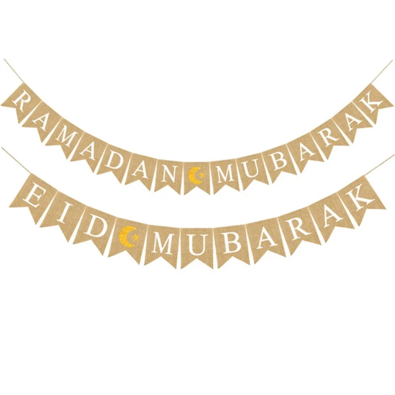 2021 Eid Мубарак баннер Рамадан Карим Украшения мусульманские льняные Висячие Флаг с веревками ислам домашний декор вечерние принадлежности 1 шт