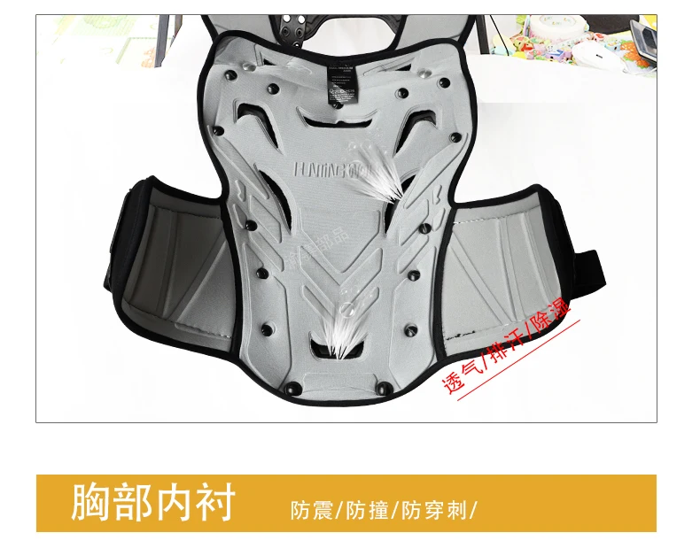 Protective Armor Is Made Of High-density Wear-resistant Nylon. Moveable Liner Allows For Easy Cleaning, Multiple Large Vents Of Plastic Shells And Foam Are For Maximum Ventilation, All Of The Advantages Keep You Secure During Riding.