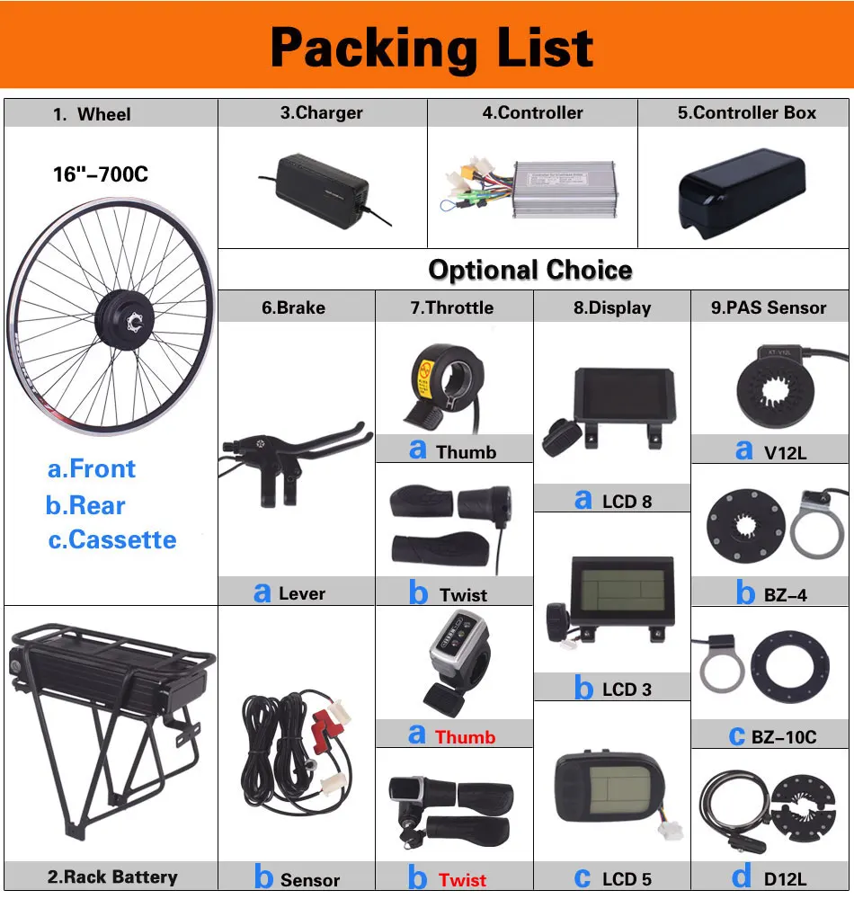 Этот комплект поставляется со всем, что вам нужно для преобразования вашего велосипеда в электронный велосипед.