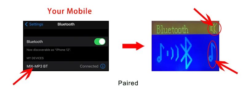 3. Включите bluetooth оборудование, например мобильный телефон, выполните поиск и Сопряжение bluetooth.