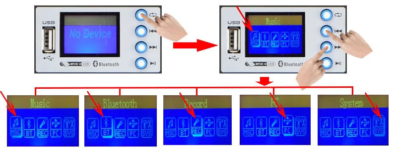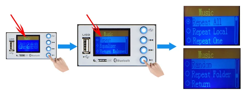 Б) нажмите 2-ю или 3-ю кнопку, чтобы выбрать «Музыка»