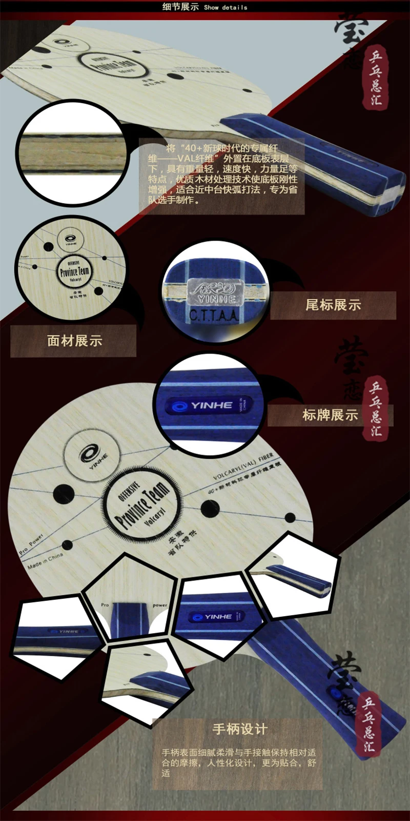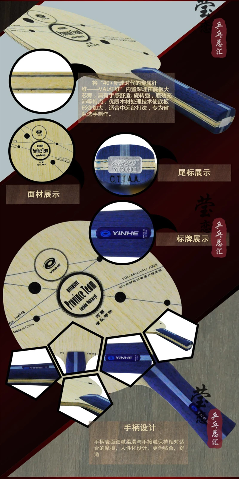 Особенности ракеток: «40 + new ball era's excellent fiber - VAL», встроенный в глубокий погребенный в нижней части возле Большого ядра, имеет ощущение комфорта, сильное вращение, дно