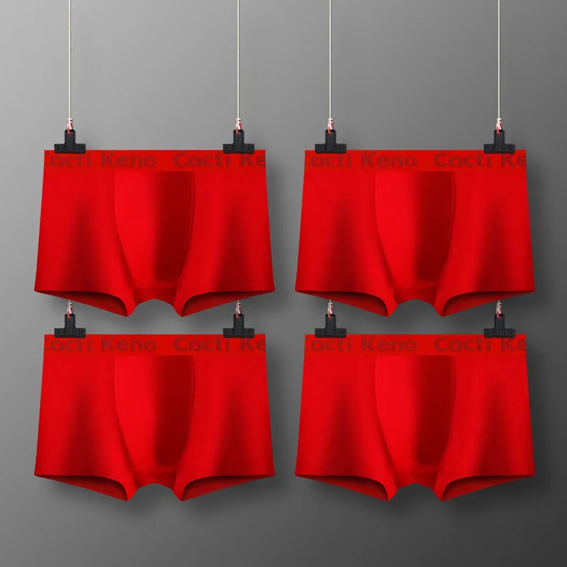 4 шт. в каждой коробке, новые мужские хлопковые боксеры, китайские красные большие трусы с жаккардовой талией, сексуальные шорты, мужское нижнее белье на удачу, L-5XL