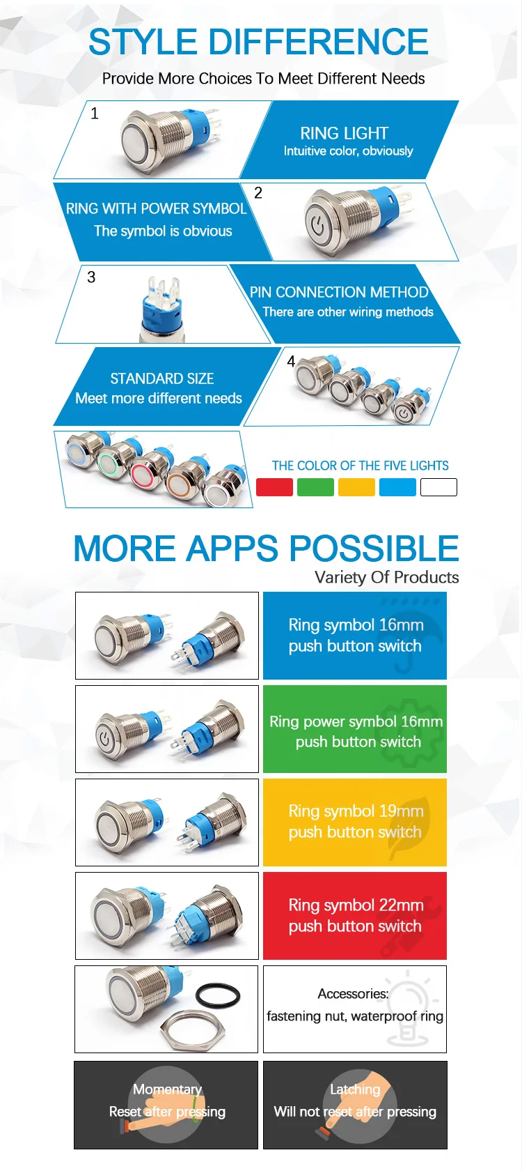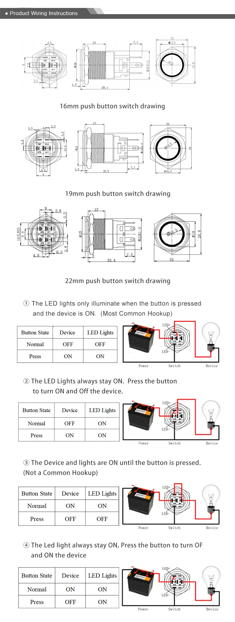 16 мм 19 мм 22 мм 12 В светодиодный 1NO1NC водонепроницаемый металлический кнопочный переключатель мгновенная защелка вкл. Автомобильный мото переключатель
