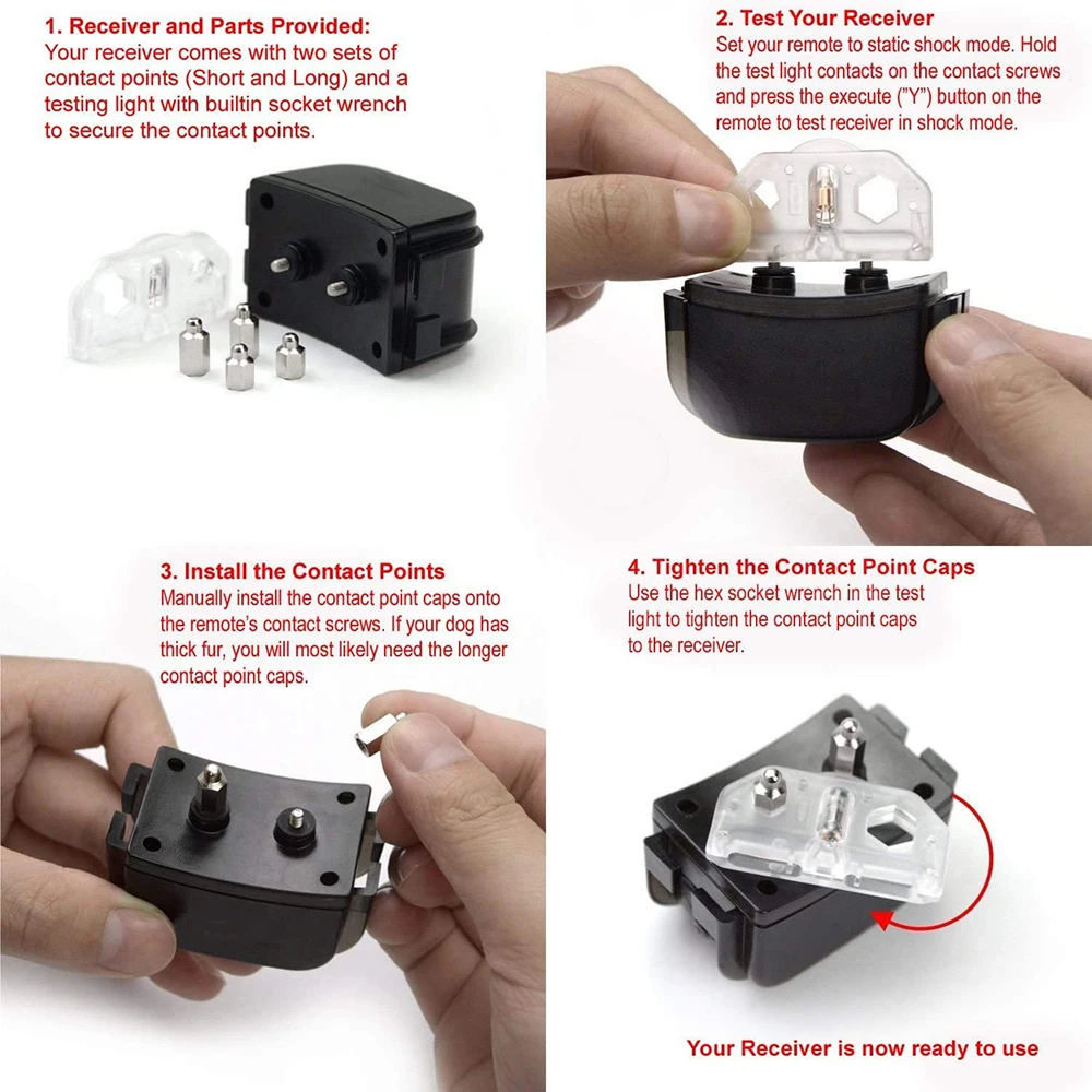 4. Режим электрического удара: Используйте статическое электричество, чтобы шокировать домашних животных, чтобы дать серьезную функцию предупреждения, это не повредит домашних животных, боль неизбежна, используйте его в качестве последнего средства! (Примечание: При использовании функции электрошока убедитесь, что два металлических столба близки к коже собак, и более толстые волосы должны быть подрезаны короче, просто Режьте небольшой кусок контактной поверхности не повлияет на внешний вид)