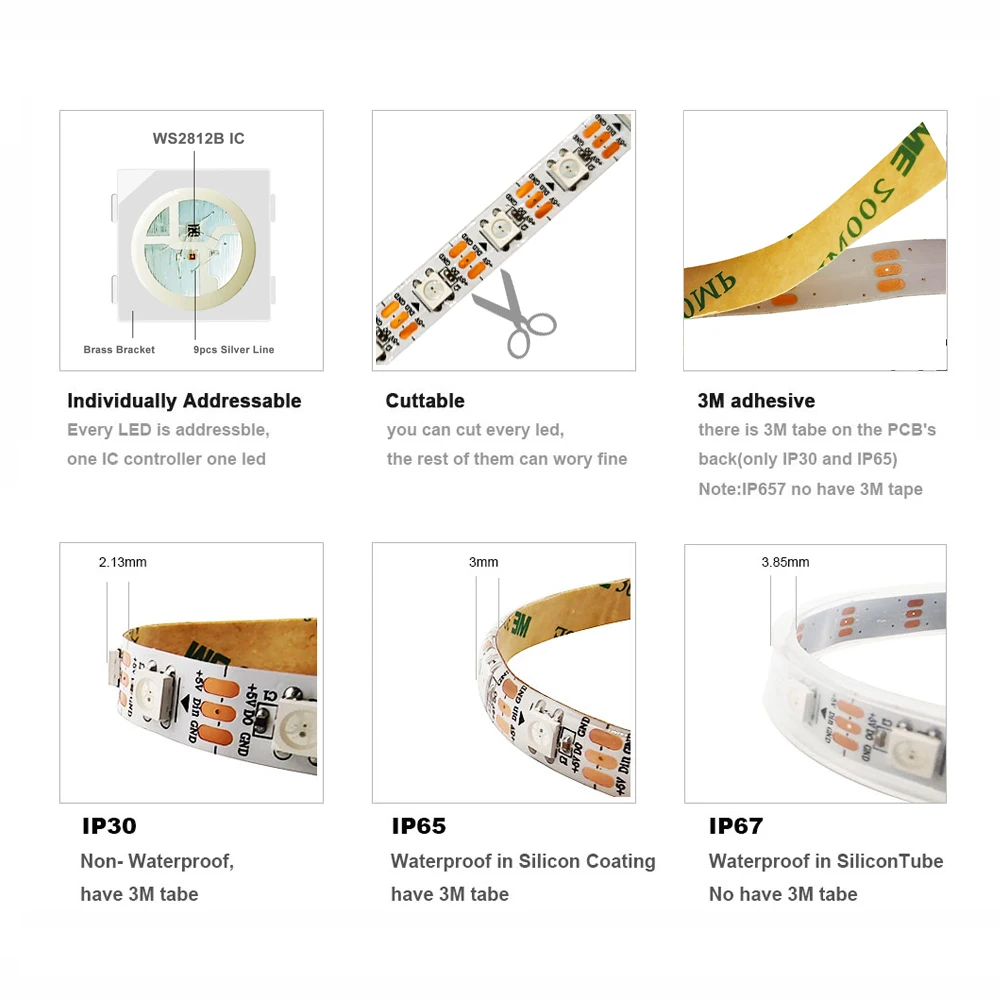 WS2812B Dream Color Strips Can Be Used For TV Hotel, KTV, Bar, Game Room And Other Leisure, Entertainment Decoration To Heighten The Atmosphere, Car Chassis, Car Decoration, Shop Decoration, Home Decoration And Other Decoration.