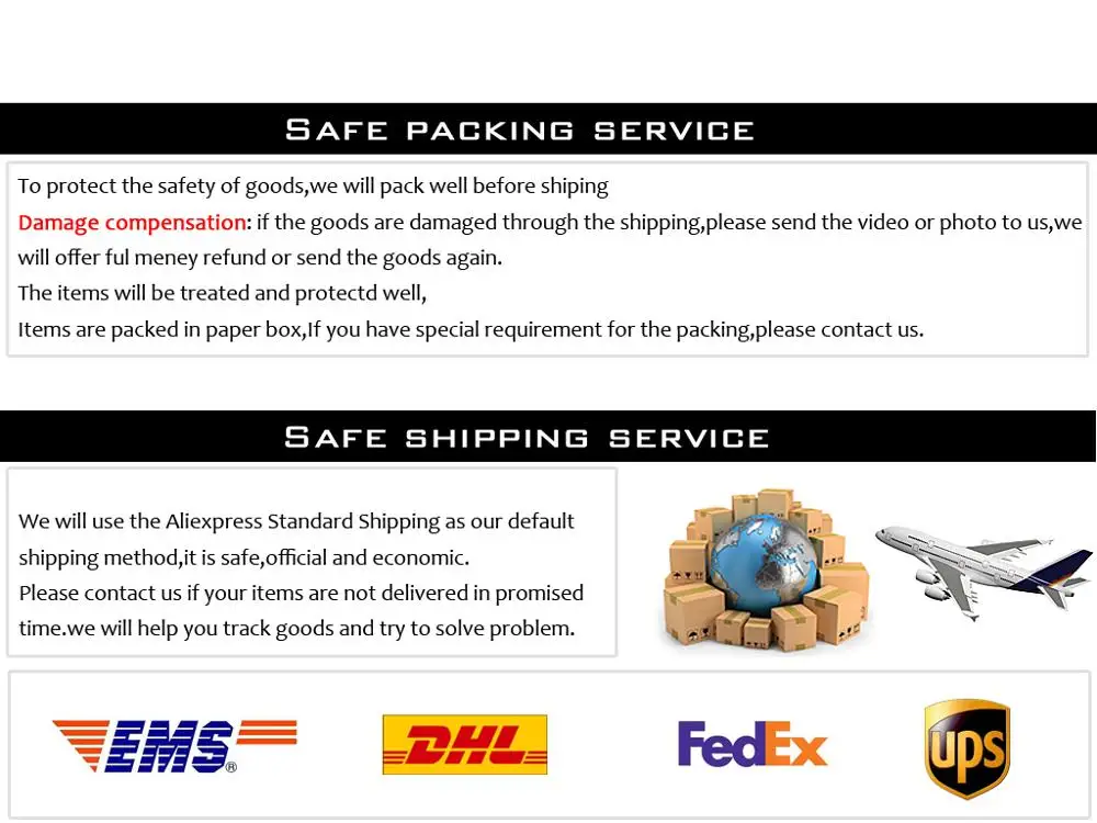 3. Если вы не получили посылку в течение расчетных дней после оплаты заказа, пожалуйста, свяжитесь с нами. Мы Отследим доставку и свяжемся с Вами в самое ближайшее время. Наша цель-удовлетворение потребностей клиентов!