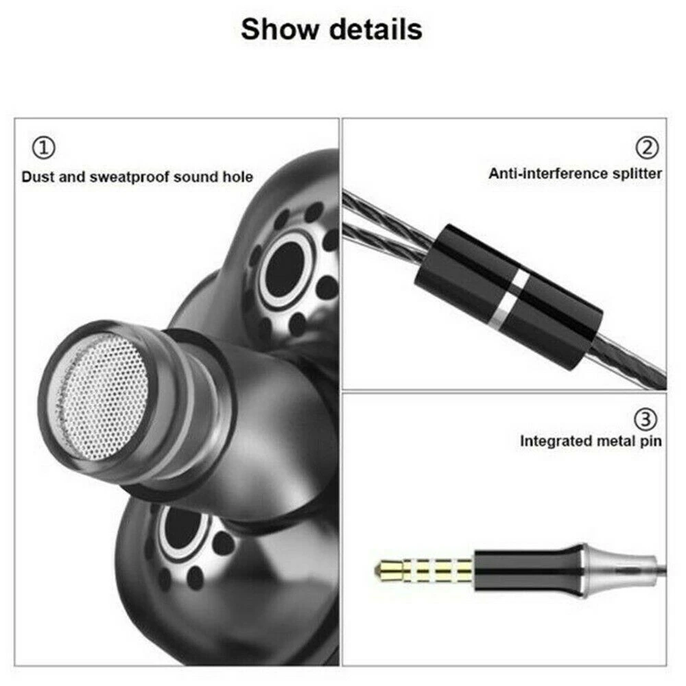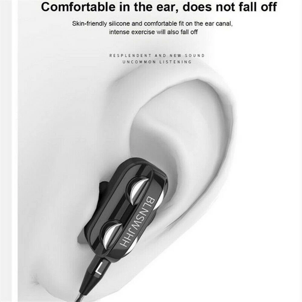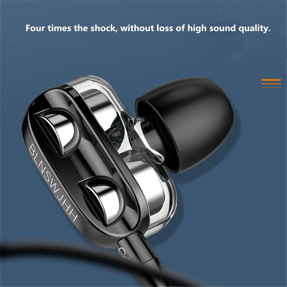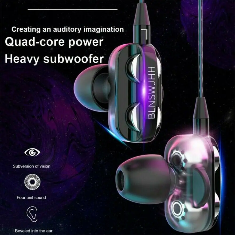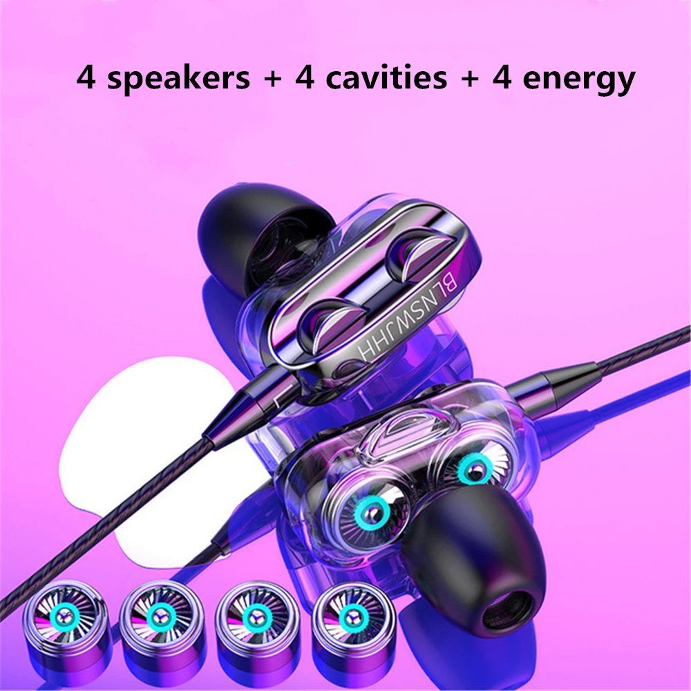 Беспроводные наушники 3,5 мм с тяжелыми басами, Hi-Fi стерео наушники-вкладыши, гарнитура с микрофоном, микрофоном, 4 динамика, аксессуары для телефона