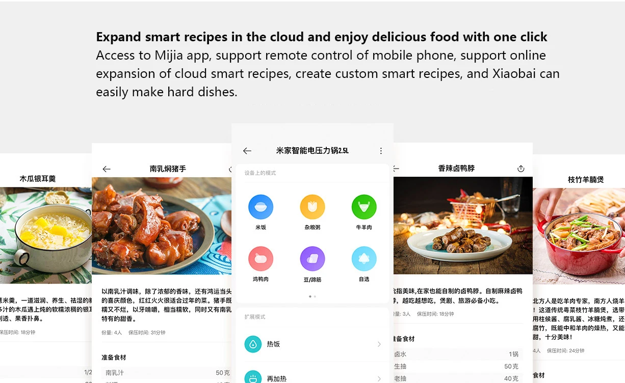 Он поддерживает двойной режим резервирования для удаленного управления операционной панелью и приложением Mijia, и время окончания приготовления может быть установлено гибко.