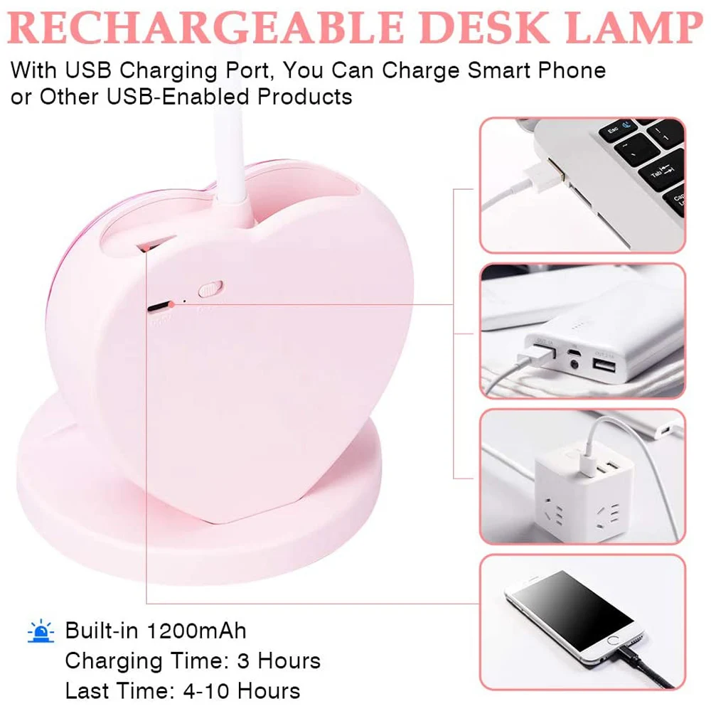 [Rechargeable battery and USB charging]-Equipped with a USB data cable, this cordless learning light can be easily powered by a power bank, AC adapter or the USB charging port of a laptop. The built-in 1200mAh rechargeable battery supports 3-8 hours of working time after being fully charged. Low power consumption and long service life. A bedside reading lamp suitable for teenagers/girls/boys.
