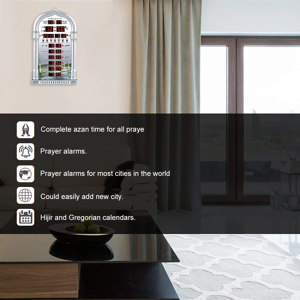 Цифровой азан мечеть молитва часы исламская мечеть азан календарь мусульманская молитва настенные часы Будильник Рамадан домашний декор дистанционное управление
