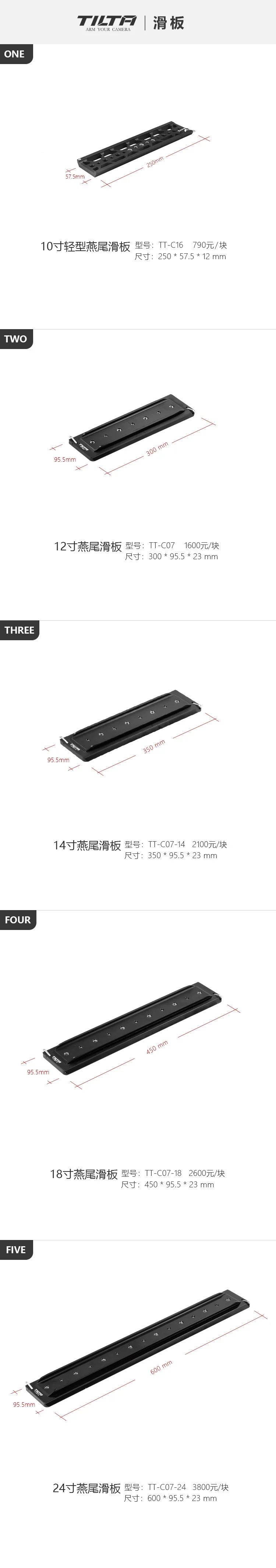 Tilta TT-C07 12 "/14"/18 "/24" ARRI стандарт легкий ласточкин хвост пластина Крепление камеры rig и совместимый Arri Стандартный baseplate