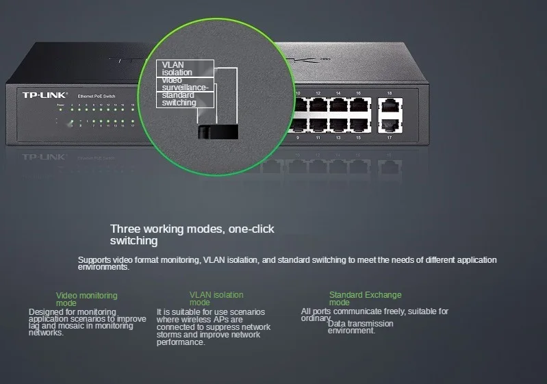 Поддержка видео мониторинга, изоляции VLAN и стандартного переключения.