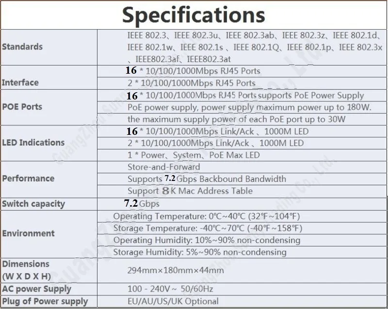 Максимальный источник питания Poe для всей машины составляет 180 Вт, а максимальный источник питания Poe для одного порта-30 Вт.